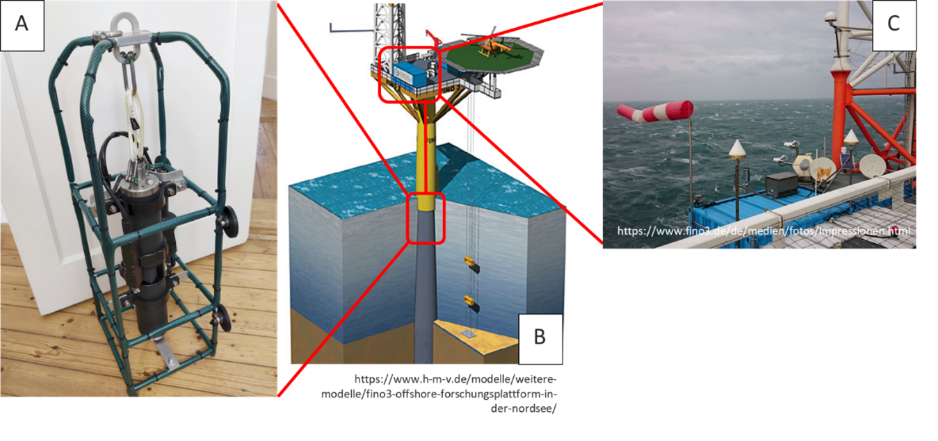 Das ULTFARMS Team der FuE-Zentrum FH Kiel GmbH hat einen hochempfindlichen Sensor, die Phycoprobe, erfolgreich in den Innenraum der Monopile-Struktur der FINO3 integriert. Die Phycoprobe, ein hochmoderner Sensor, ermöglicht die Klassifizierung der Mikroalgen-Sukzession vor Ort durch den Datentransfer via Satellitenverbindung. So können Daten gesammelt werden, die wertvolle Erkenntnisse über die Entwicklung von Mikroalgenblüten liefern.