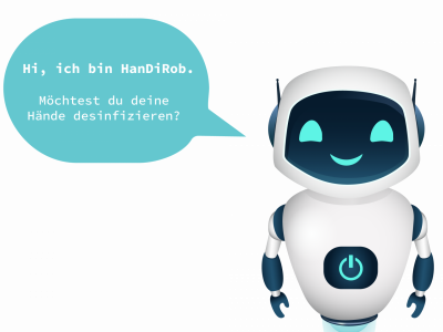 Im Rahmen des neuen Interreg-Projektes ”Hand Disinfection Robot – HanDiRob” werden erfahrene Akteur*innen aus dem Gesundheits- und Wohlfahrtsbereich einen Roboter entwickeln, der sich aktiv an Bürger*innen wendet. Er wird in der Lage sein, Menschen zu erkennen, mit ihnen zu sprechen, ihnen zuzuhören, ihre Blicke und Handlungen zu erkennen und richtig darauf zu reagieren. So soll er zu einer gründlichen Handdesinfektion animieren, eine simple Maßnahme mit großem Effekt.