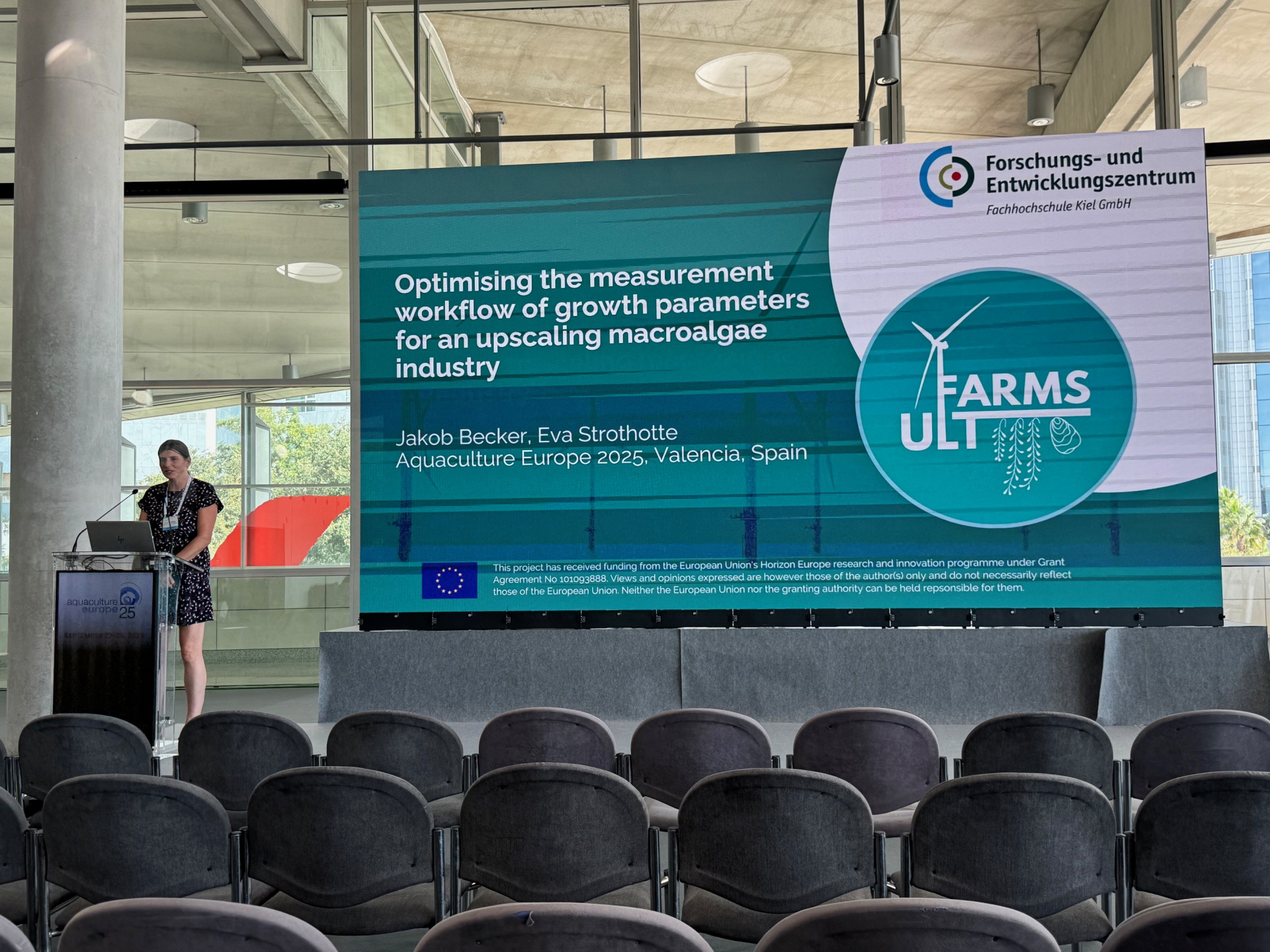Diese Beiträge zeigen, wie weit das ULTFARMS-Projekt nicht nur konzeptionell, sondern auch praktisch fortgeschritten ist. Die Präsentationen boten hohe praktische Relevanz und sprachen sowohl wissenschaftliche als auch angewandte Aspekte an. Mit unseren Beiträgen zu ULTFARMS konnten wir unsere Rolle in der europäischen Forschung sichtbar machen. In persönlichen Gesprächen entstanden Anknüpfungspunkte für gemeinsame Projekte oder Partnerschaften – sei es mit Institutionen, Firmen oder anderen EU-Projekten im Aquakultur-Bereich. Die Teilnahme inspirierte uns, neue Ideen aufzugreifen, kritisch zu reflektieren und Innovationen weiterzuentwickeln. Der Austausch mit Expert*innen aus ganz Europa forderte uns zugleich heraus und bestärkte uns in der Strategie, Projekte wie ULTFARMS weiter voranzutreiben.