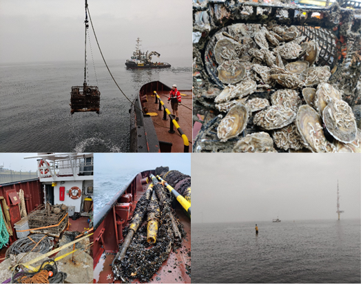 Die Forschenden des ULTFARMS-Projekts haben die letzte Mission zum Offshore-Standort FINO3 unternommen. Vom 6. bis 7. März 2026 demontierten die Wissenschaftlerinnen und Wissenschaftler dort die letzten Aquakultur-Anlagen. Darunter: ein Experiment zur Zucht von europäischen Austern. Die Bergung der dicht besiedelten Zuchtkörbe und der restlichen Infrastruktur markiert das Ende der dreieinhalbjährigen Testphase, die den Projektbeteiligten wertvolle Daten über Offshore-Aquakultur lieferte.